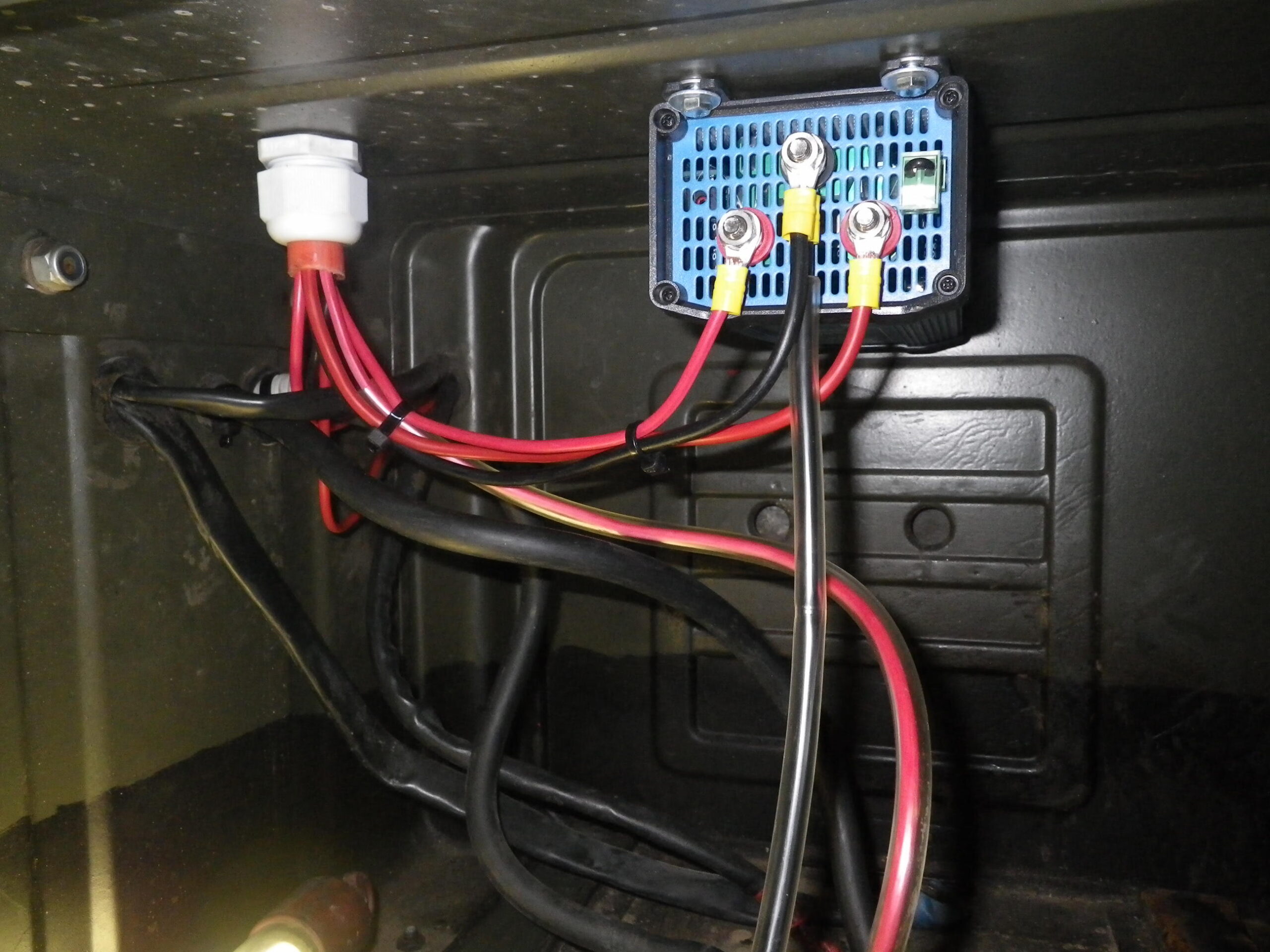 Im Batteriekasten über den Batterien angeordnet und hinter dem Fahrersitz mit eigenen schaltbaren Sicherungen geschützt, damit der Wandler bei längerem Stillstand nicht die Batterien leer saugt.
